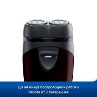 Бритва беспроводная, вес - 0.151 кг, бритвенная система CloseCut, щеточка для чистки, защитная каппа, работа от батареек типа АА, бритвенные головки HQ56, самозатачивающиеся лезвия