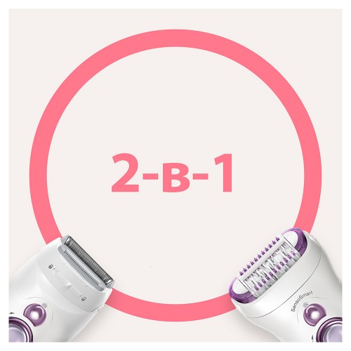Область применения: ноги, тело, зона бикини; Тип эпиляции: сухая/влажная; Количество скоростей: 2; Количество насадок 3