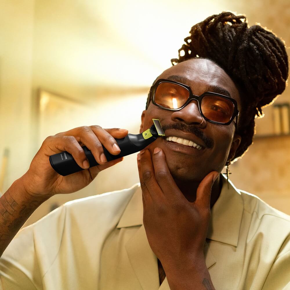 | Комплектация | ручка OneBladу Pro 360, гребень для подравнивания с 14 установками длины, защитная насадка, насадка-гребень для тела, дополнительное сменное лезвие, защитный колпачок, дорожный футляр |