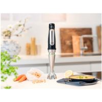 Погружной блендер Braun Multiquick 7 MQ7087X — это мощный и универсальный кухонный прибор, который поможет вам легко и быстро приготовить различные блюда. Благодаря технологии SmartSpeed вы можете регулировать скорость одним нажатием, чем сильнее нажатие, тем выше скорость. Это позволяет вам легко контролировать консистенцию ваших блюд, от грубого измельчения до тонкого пюре. Блендер оснащен стержнем ActiveBlade, который автоматически выдвигается до дна чаши, обеспечивая эффективное смешивание даже твердых продуктов. Он отлично подходит для приготовления дипов, соусов, заправок для салатов, супов, детского питания, а также напитков, смузи и молочных коктейлей. Технические характеристики: Тип: погружной блендер Модель: Braun MULTIQUICK 7 MQ7087X Основной цвет: серебристый Дополнительный цвет: черный Максимальная мощность: 1000 Вт Материал корпуса: металл, пластик Материал погружной части: нержавеющая сталь Тип управления: кнопки Плавная регулировка скорости: есть Количество скоростей: 10 Турборежим: есть Импульсный режим: есть Защита от перегрева: есть Комплектация: Блендер Измельчитель (1500 мл) Насадка-комбайн (300 мл) Венчик для взбивания Насадка для пюре Мерный стакан (600 мл) Диск для картофеля фри Диск для нарезки ломтиками и шинковки Диск-терка (крупная) Диск-терка (мелкая) Диск-шинковка Документация