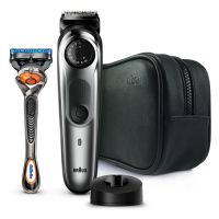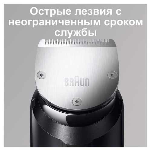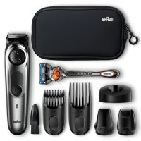 Ухаживайте за бородой и усами легко и совершенствуйте свой стиль без усилий с помощью триммеров Braun. Мужской триммер для бороды и усов Braun BT7940 оснащен технологией AutoSense, которая автоматически подстраивается под густоту и длину волос, обеспечивая постоянную скорость даже при обработке густых волос. Лезвия из нержавеющей стали снабжены функцией самозаточки, что увеличивает срок их службы. Этот триммер работает как от сети, так и от аккумулятора, имеет индикатор зарядки. Время автономной работы составляет 100 минут, а время зарядки не превышает 1 часа. Специальный индикатор поможет понять, что аккумулятор разрядился. Получить дополнительные 10 минут на 1 процедуру можно после 5-минутной зарядки. Мужской триммер для бороды и усов Braun BT7940 имеет 39 настроек длины: от 0,5 до 20 мм. В наборе 4 насадки (для коротких волос, для длинных волос, для точного подравнивания, сеточная мини-бритва ) и щёточка для чистки триммера. В комплекте также бритва Gillette Fusion ProGlide для гладкого бритья и чехол для хранения. Особенности устройства: ー 39 настроек длины. Выберите идеальную длину с помощью колеса регулировки длины и сменным насадкам. ー Самозатачивающиеся металлические лезвия имеют неограниченный срок службы и обеспечивают идеальный срез. ー Эргономичный дизайн и немецкое качество. ー 100 минут автономной работы рассчитаны на несколько использований. На восстановление заряда батареи уходит не более часа. ー 100% водонепроницаемый. Для лёгкой очистки под водой.Комплектация: триммер для бороды и усов Braun BT7940, гребень для коротких волос (1-10 мм), гребень для длинных волос (11-20 мм), сеточная мини-бритва, насадка для точного подравнивания, бритва Gillette Fusion ProGlide, зарядное устройство Smart Plug, зарядная станция, щёточка для чистки, мягкий чехол, Руководство по эксплуатации + Гарантия.