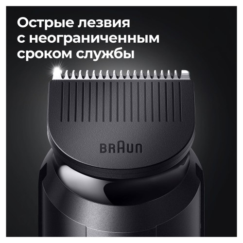 Триммер универсальный Braun MGK5365 , 9-в-1 + Бритва Gillette. Острее, быстрее, эффективнее. Более широкая режущая зона головки триммера захватывает и срезает больше волос при каждом движении, чем любой предыдущий триммер Braun. Завершите свой образ за меньшее количество проходов. СТАЙЛИНГ БОРОДЫ. Создавайте бороду любой длины в интервале 0,5-21 мм с 4 гребнями, дополнив ее аккуратными и точными линиями на шее и щеках основным триммером. Обрабатывайте небольшие зоны, используя насадку для точного стайлинга. СТРИЖКА ВОЛОС. Подстригайте волосы, установив нужную длину - 0,5-21мм благодаря 2 регулируемым гребням. ЧИСТОЕ БРИТЬЕ. Чистое бритье шеи, щек и лица с бритвой Gillette Fusion5 ProGlide с технологией Flexball. УХОД ЗА ТЕЛОМ. Безопасно обрабатывайте все тело, от подмышек до груди. УХОД ЗА НОСОМ И УШАМИ. Удаляйте волосы из ушей и носа эффективно и без выдергиваний. СВЕРХОСТРЫЕ МЕТАЛЛИЧЕСКИЕ ЛЕЗВИЯ С НЕОГРАНИЧЕННЫМ СРОКОМ СЛУЖБЫ. Сверхострые металлические лезвия с неограниченным сроком службы позволяют достичь идеального результата с первого движения. Без защипываний и выдергиваний волос. 13 ТОЧНЫХ НАСТРОЕК ДЛИНЫ. МОТОР AUTOSENSING. Мотор Autosensing обеспечивает постоянную скорость даже при обработке густых волос. ЛИТИЙ-ИОННЫЙ АККУМУЛЯТОР ДЛЯ РАБОТЫ НА 150% ДОЛЬШЕ (в сравнении с MGK3040). 100 мин. работы от аккумулятора. Полная подзарядка за 1ч.5 мин зарядки хватает на 1 бритье. ВЛАЖНАЯ ОЧИСТКА. Легко очищается под проточной водой. СВЕТОДИОДНЫЙ ИНДИКАТОР ЗАРЯДА. Всегда информирует о состоянии аккумулятора. АВТОМАТИЧЕСКАЯ НАСТРОЙКА ПОТРЕБЛЯЕМОГО НАПРЯЖЕНИЯ. Прибор автоматически адаптируется к любому напряжению между напряжением 100V-240V. Он работает почти в каждой стране. РЕЖИМ АВТОМАТИЧЕСКОЙ БЕЗОПАСНОСТИ. Позволяет не использовать прибор в момент зарядки.